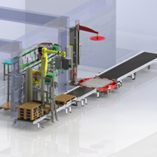Kada robot naslaže paletu, ista prelazi u automatsku mašinu za strečovanje. Nakon strečovanja, paleta putuje na izlazni transporter odakle se skida viljuškarem.